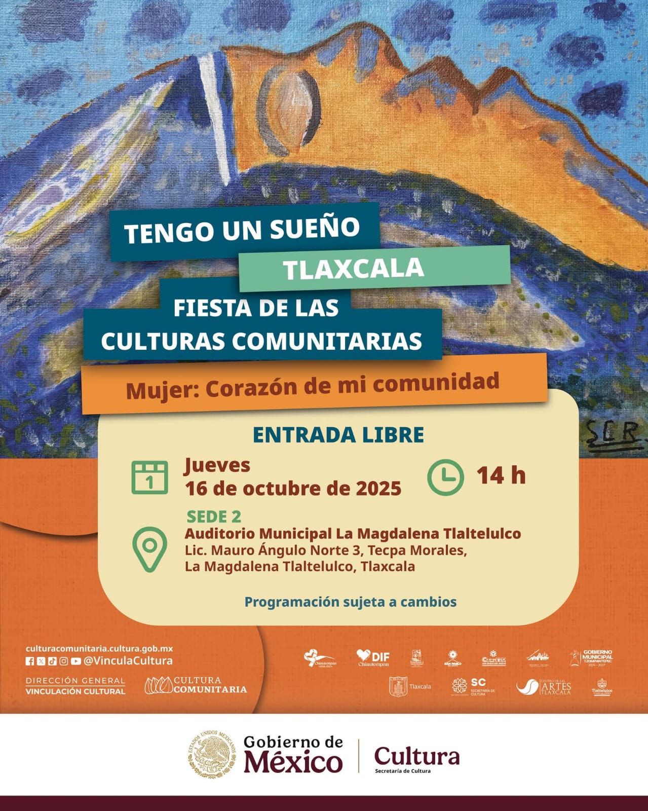 ![]() ![]() La Secretaría de Cultura, el Gobierno de Tlaxcala y la Secretaría de Cultura del Estado conmemoran los 500 años de la fundación de la Ciudad de Tlaxcala, siendo parte del Festival Internacional Cervantino Edición 53 Colombia; el artista, 𝐏𝐚𝐪𝐮𝐢𝐭𝐨 𝐂𝐫𝐮𝐳 𝐓𝐫í𝐨 de Veracruz México, presentará Reminiscencias, un viaje sonoro que recupera identidad y raíces veracruzanas. |